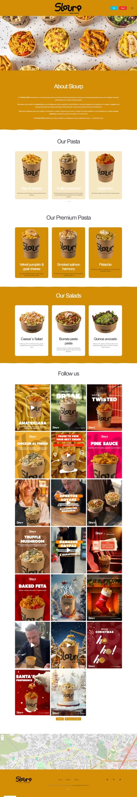 Για το Slourp Pasta υλοποιήσαμε ένα responsive WordPress website με custom σχεδιασμό, προσαρμοσμένο στην ταυτότητα του brand. Η δομή του site δίνει έμφαση στην οπτική εμπειρία, με μεγάλες εικόνες προϊόντων, καθαρές ενότητες παρουσίασης και εύκολη πλοήγηση, ώστε ο επισκέπτης να γνωρίζει άμεσα τα προϊόντα και τη φιλοσοφία της επιχείρησης. Το design είναι minimal αλλά δυναμικό, με χρήση σύγχρονων γραμματοσειρών και προσεγμένων animations που ενισχύουν τη συνολική εμπειρία χρήστη.